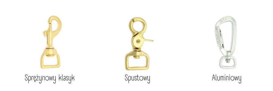 UWAGA! Pamiętaj, że karabińczyk determinuje wytrzymałość smyczy, dlatego bardzo ważne jest żeby dobrać odpowiedni karabinek do masy psa oraz (przede wszystkim) jego żywiołowości i sposobu użytkowania ;) Okucia i przede wszystkim karabińczyki dobieraj pod Wasz indywidualny sposób użytkowania.
